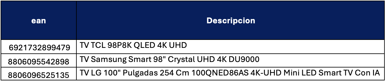 Para que aplique el beneficio, en la factura de compra SOLO debe incluir el/los televisores(es). Las compras que no cumplan con las condiciones establecidas, se les aplicará la tasa vigente al momento de la compra. Tasa del 1 al 28 de febrero de 2026: 25,20737% E.A.
